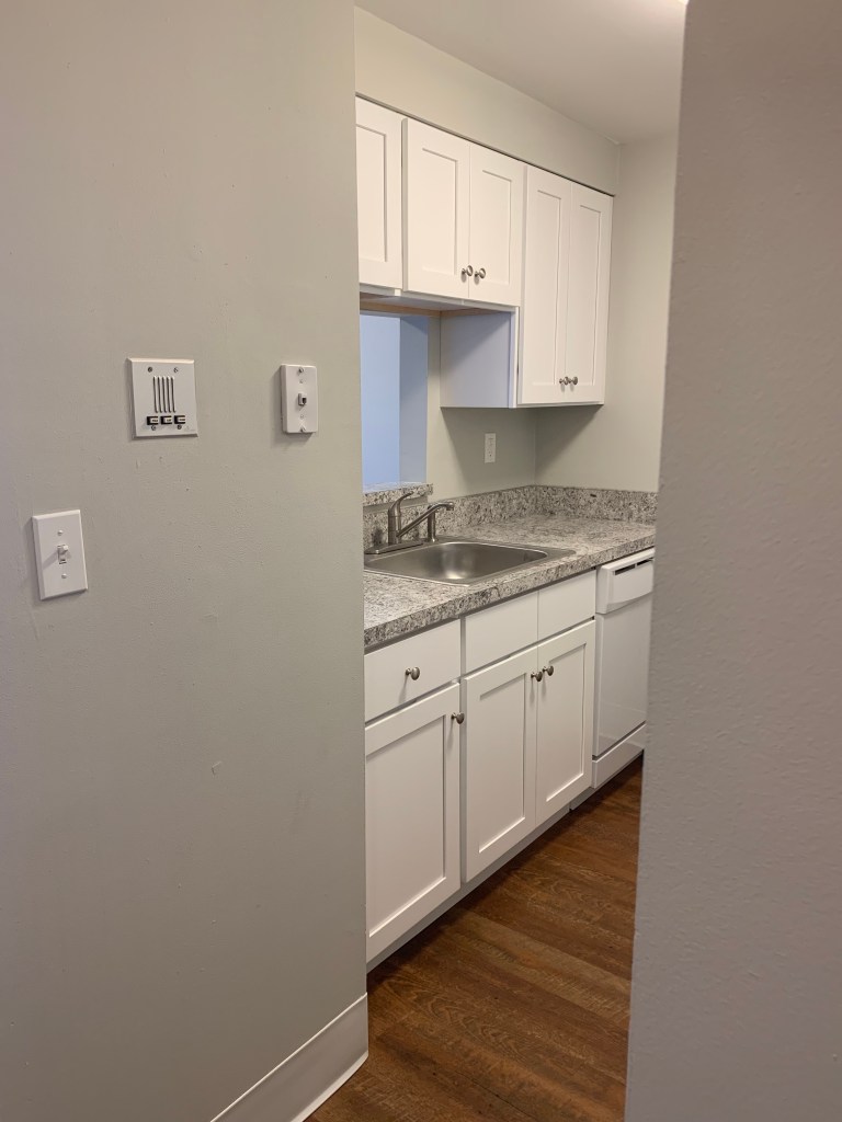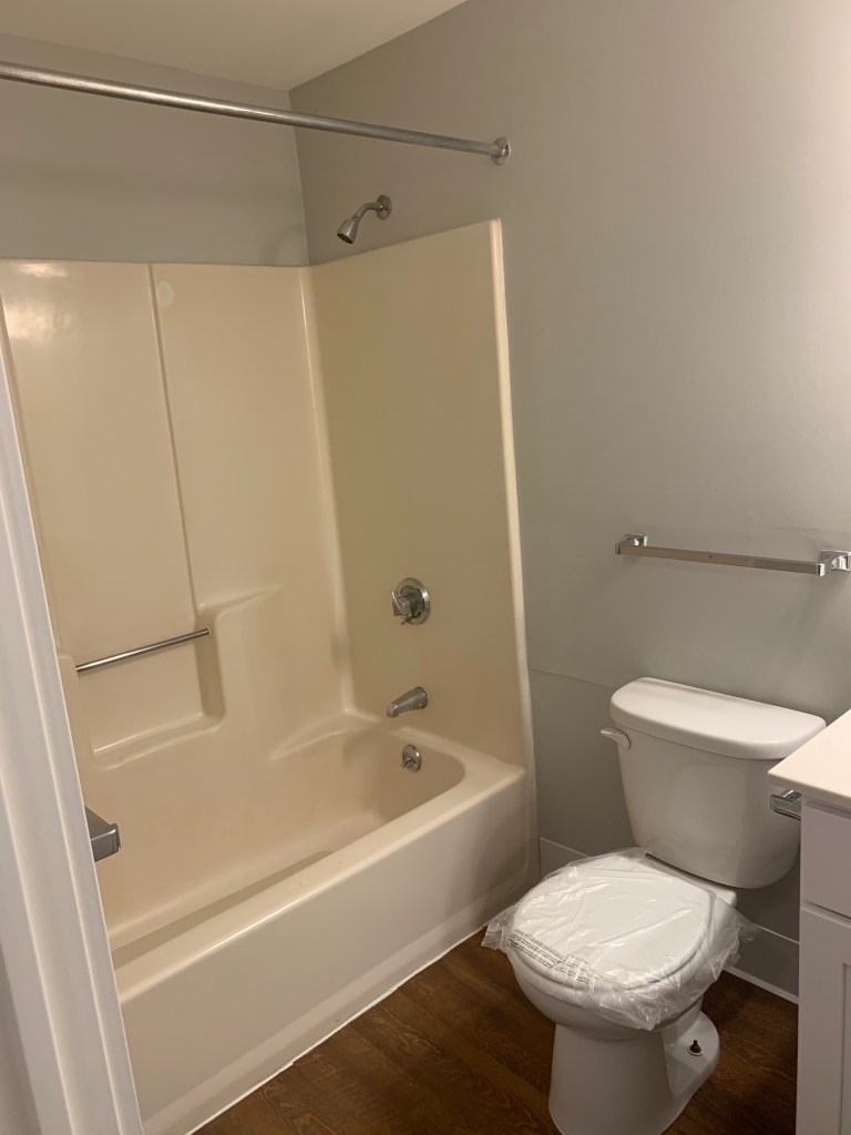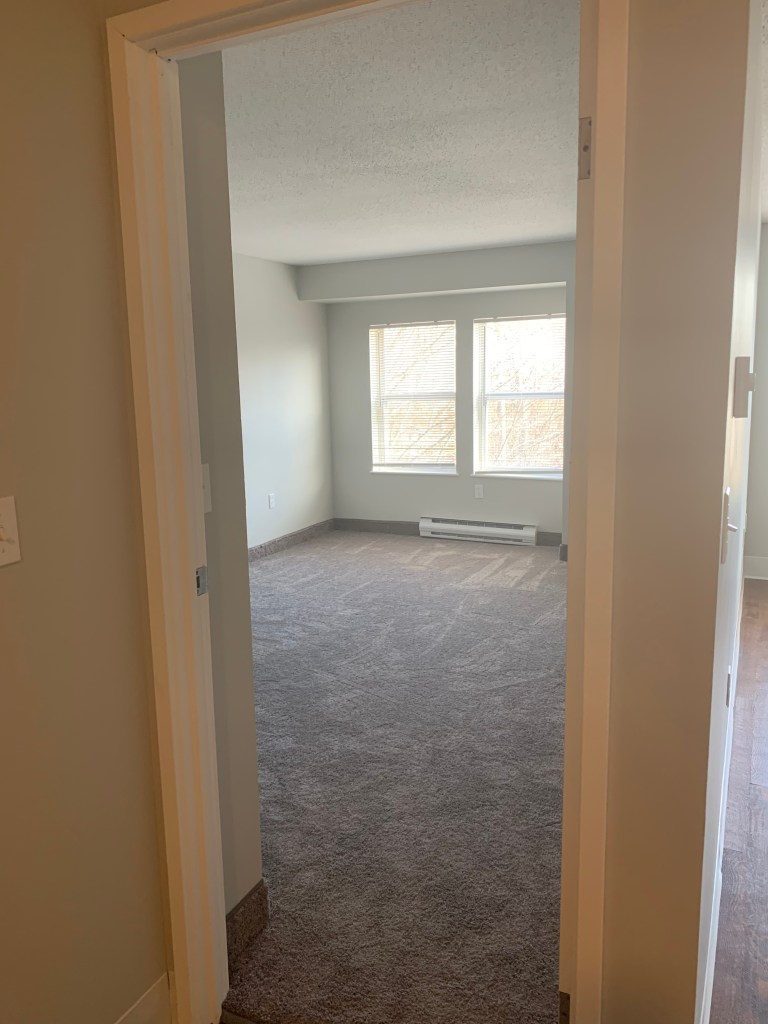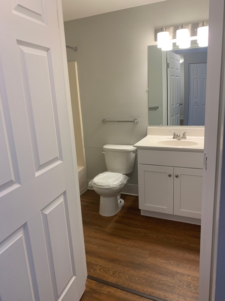 Vinyl plank flooring in entry way, living room, kitchen and bathroom.